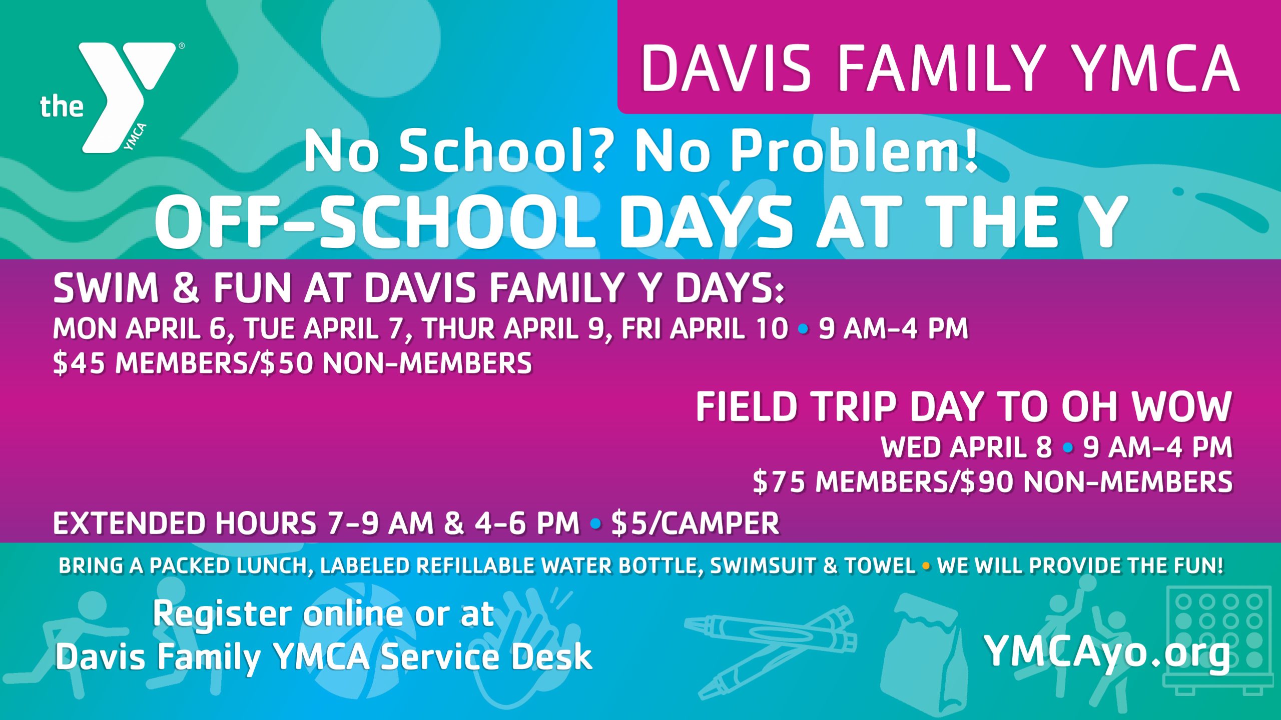 Central & Davis Family YMCA Register Today $20 Registration Members Only February 16th – April 6th
